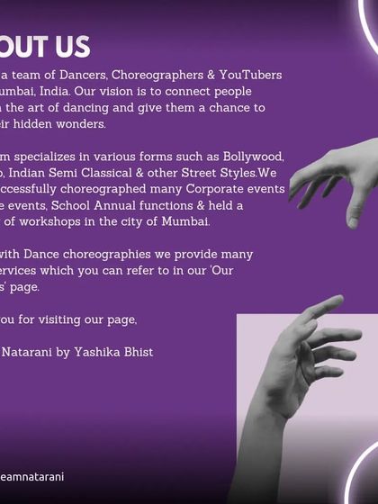 Learn more about Team Natarani and the wide range of choreography services we offer. While we specialize in weddings, our expertise extends to corporate shows, school events, music videos, and more.