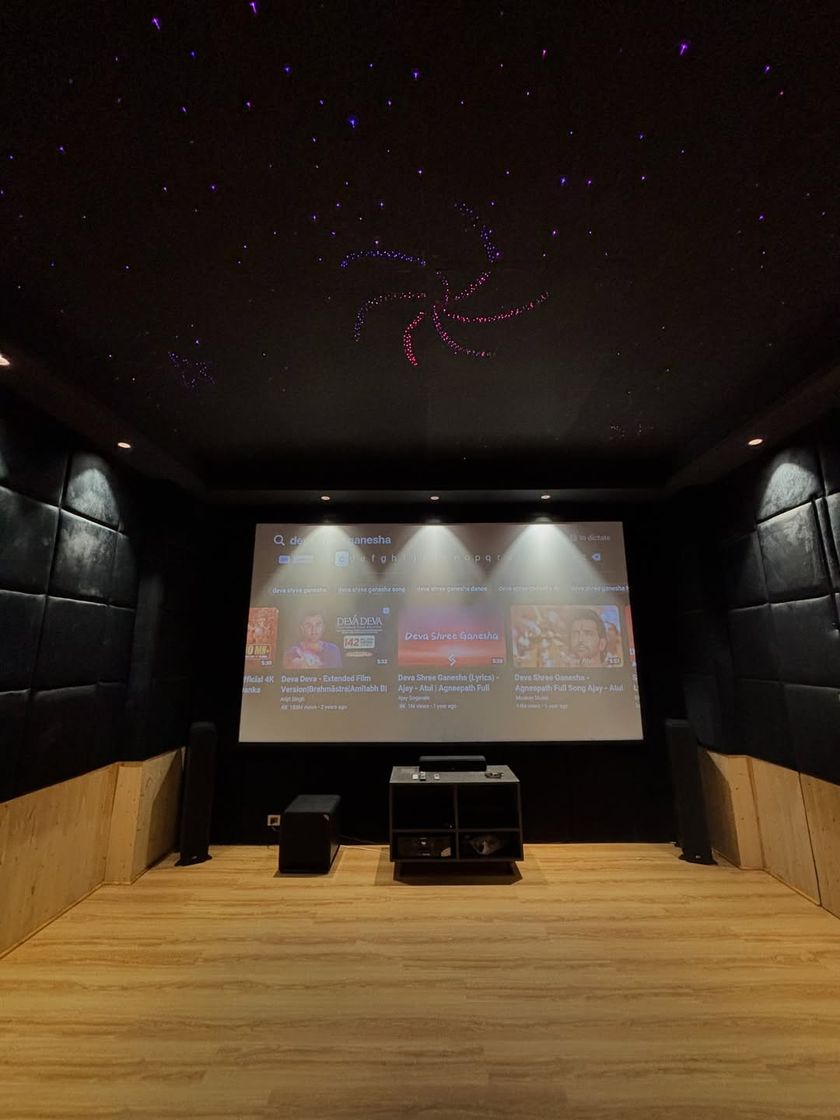 For the ultimate movie lover, I design and build dedicated home theaters from the ground up. I handle everything from acoustic treatment and starlight ceilings to luxury seating and calibrating the final Dolby Atmos system for a truly professional cinematic experience.