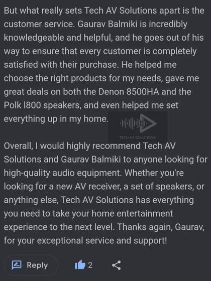 Hi, we’re Tech AV Solutions. Gaurav here, but it’s always a team effort. Audio-video is our thing, bas wahi karte hain jo pasand hai (we only do what we love). Started this gig a few years back, and honestly, it’s not just about selling gear. We get involved, visit sites, chat, sometimes become friends with clients. Four years now, all thanks to trust and support. Milestones toh aate rahenge (milestones will keep coming), let’s make some noise together!