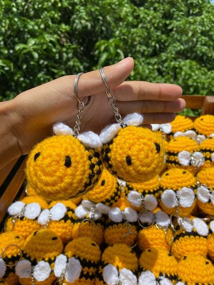 - Bulk crochet keychains and bag charms - think jellyfish, bees, bunnies, strawberries, bows, flowers, and more. These are my bestsellers.