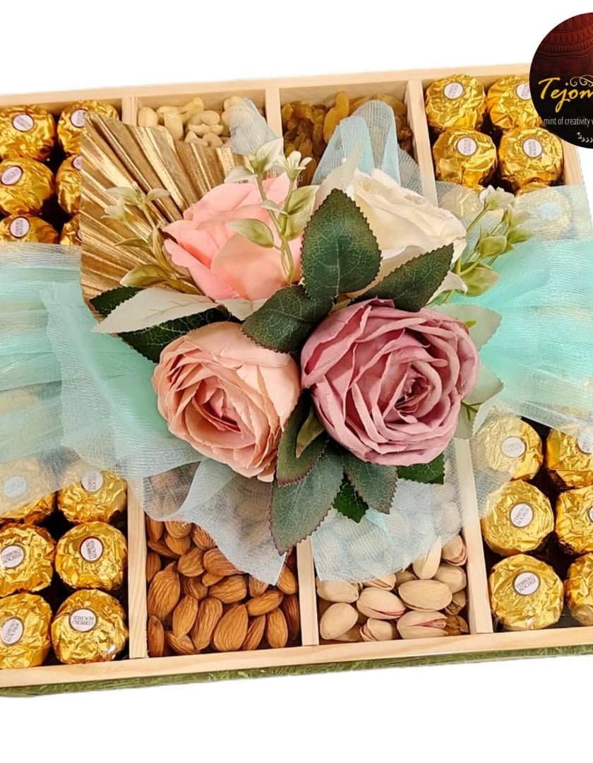 I believe a gift should be a memorable experience, which is why I curate personalized hampers and offer elegant trousseau packing services. From acrylic boxes filled with fresh fruits and dry fruits to beautifully arranged saree trays, each creation is handcrafted with a modern aesthetic and a traditional touch.