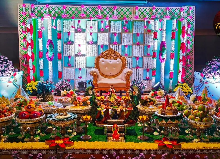 One of my favorite parts of decorating is using Pattada Gombe, or royal dolls, to tell a unique story for your event. I create miniature scenes that reflect the occasion, such as a swing scene for an engagement, a family setup for a baby shower, or a royal court for a wedding. These handcrafted dolls add a personal and charming narrative to your celebration.