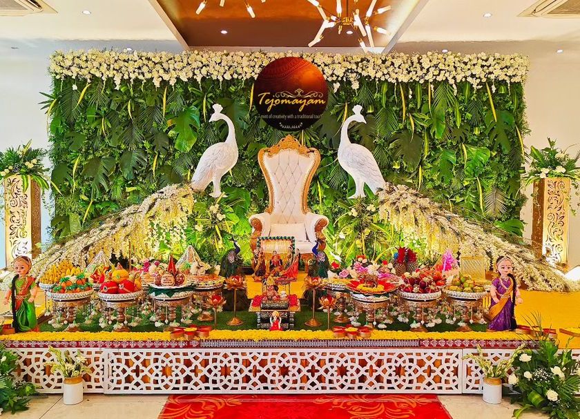 I pour my heart into creating the perfect atmosphere for welcoming a new soul. My baby shower and Seemantham setups focus on traditional elements like fruit and sweet platters, bangle arrangements, and themed backdrops, ensuring a vibrant and blessed celebration for the mother-to-be. I offer various styles, from classic marigold and jasmine themes to modern floral designs with personalized touches.