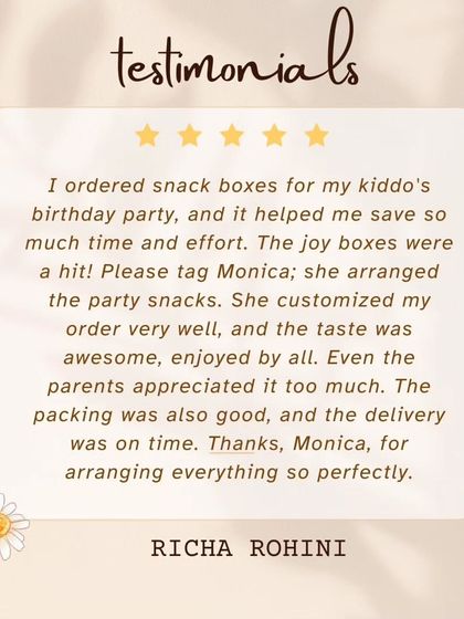 I know what kids love to eat, and I make planning their birthday party food simple and fun. My menu includes all their favourites like mini pizzas, burgers, noodles, and brownies, all packed in neat, individual boxes so there's no mess.