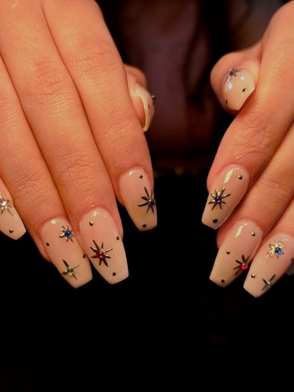 Have you seen a nail design online that you're dying to try? Bring me your inspiration. I specialize in turning your nail inspo into a reality, paying close attention to every detail to match the look you desire. This gallery shows side-by-side comparisons of the inspiration and my final creation.