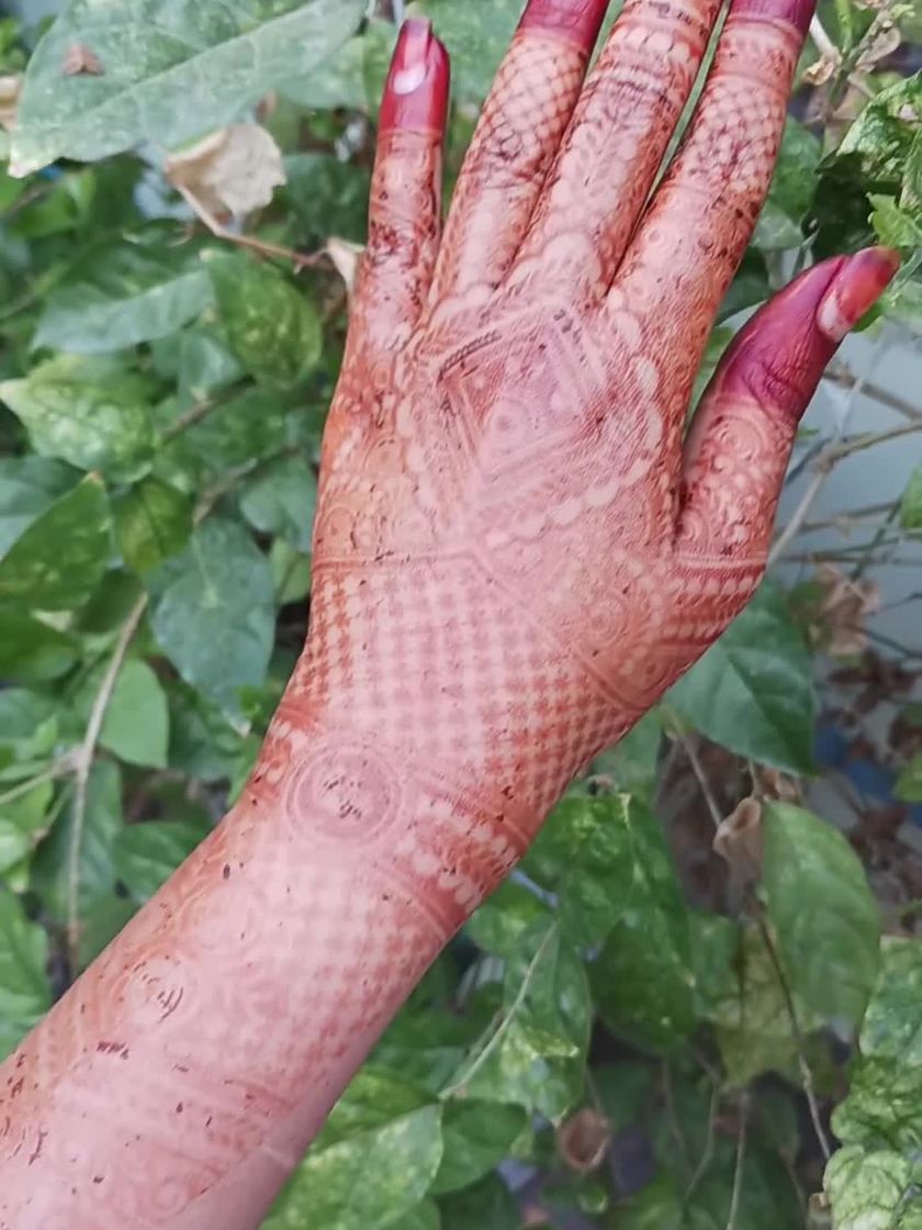 The magic of mehendi is watching the color bloom. Here you can see the stain journey, from the initial orange to the final deep maroon, which is achieved with my 100% organic henna and proper aftercare.