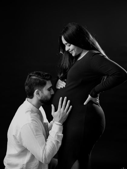 We do maternity photoshoots in our studio with lots of style options, comfortable setups, and you can choose solo, couple, or family shoots with all outfits and props sorted.