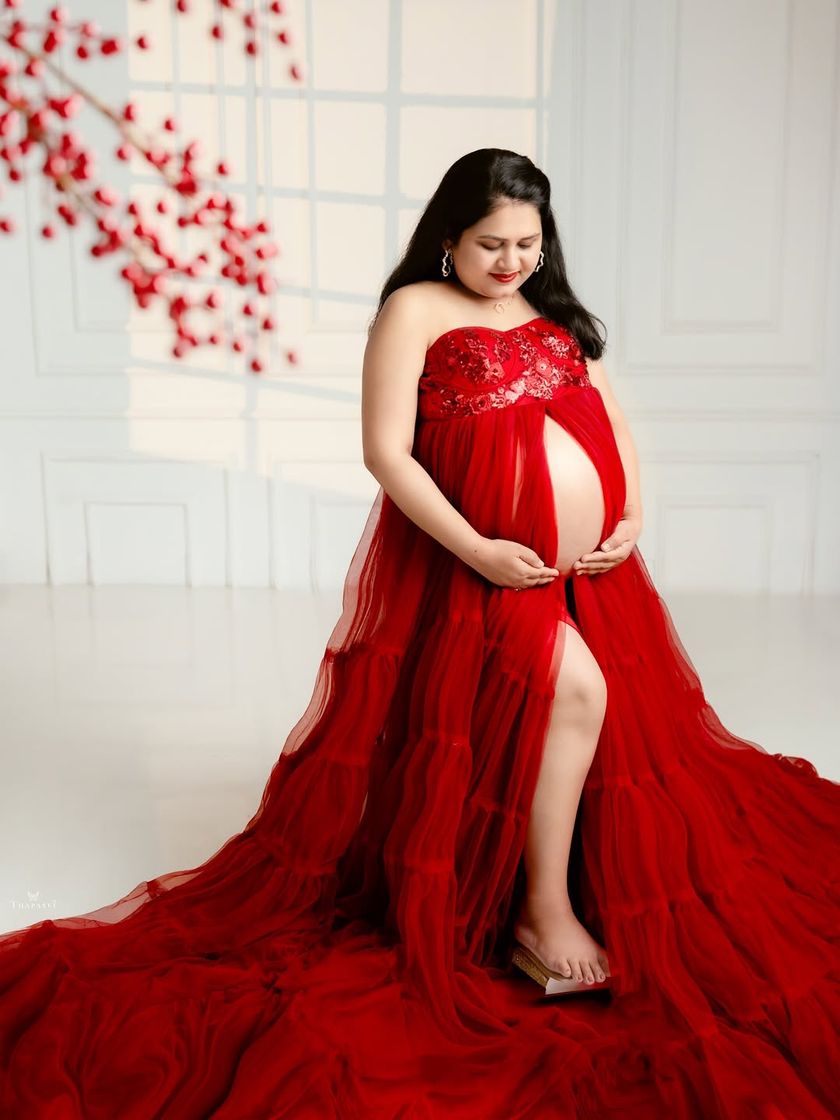 For a contemporary and ethereal look, I offer a wide selection of maternity gowns. This gallery showcases everything from dramatic, flowy gowns that create breathtaking movement to chic, fitted dresses that elegantly highlight your form.