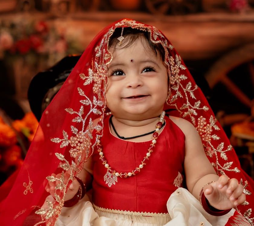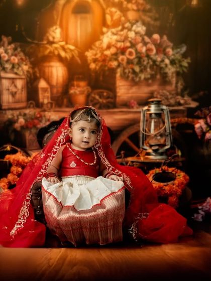 I have a special place in my heart for creating portraits that celebrate our rich Indian heritage. I offer beautifully detailed setups for themes like Little Krishna and Little Radha, complete with authentic costumes and props. I also love capturing the elegance of children in traditional attire like sarees and lehengas.