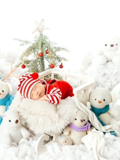 I offer special, limited-edition mini sessions to celebrate holidays like Christmas. These shoots feature festive, detailed backdrops and props to create magical portraits for your holiday cards and family albums. It's the perfect way to capture the spirit of the season.