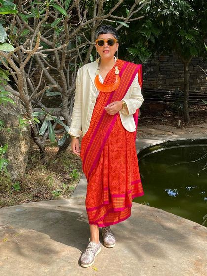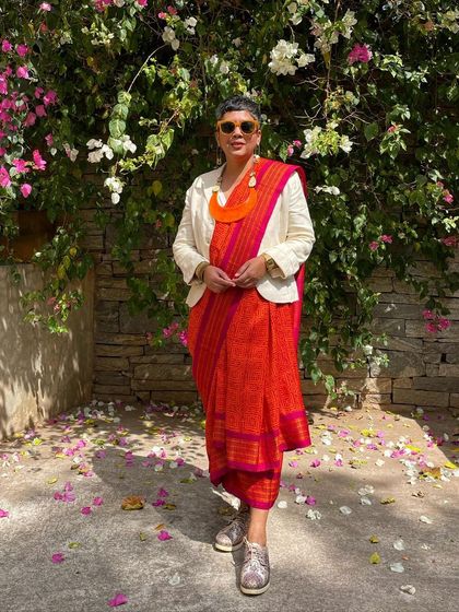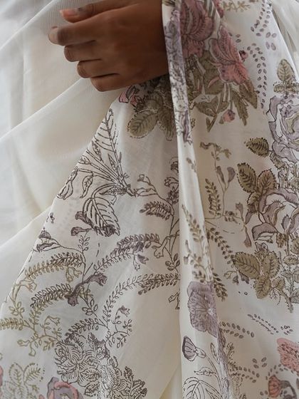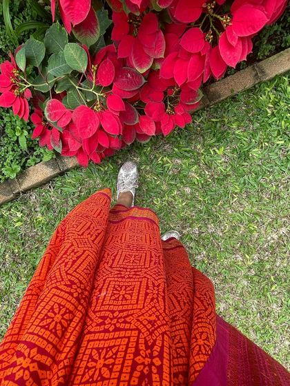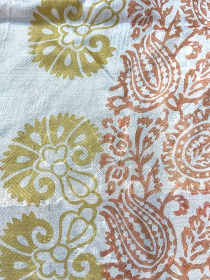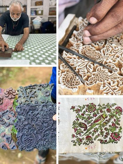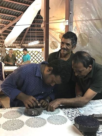 - Hand-block printed sarees in silk, handloom cotton, and chiffon. We also love giving old sarees a second life by overprinting - something we’ve done since the 70s.