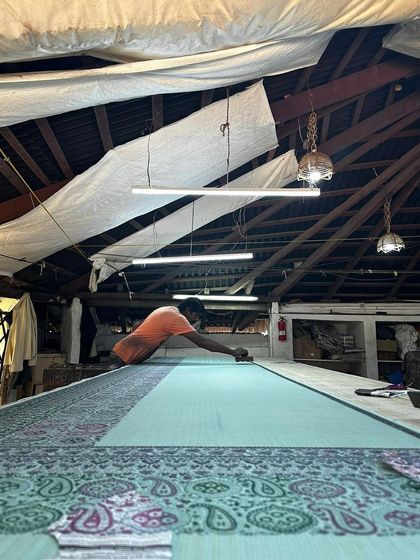 We specialize in creating bespoke textiles using traditional hand block printing techniques and natural dyes. Our production combines vintage wood blocks from the 1960s-70s with organic dyes, offering both heritage patterns and contemporary designs.