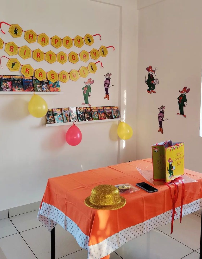 Welcome to my creative space in JP Nagar! The studio is always set up and ready for your event with long tables for art, colorful decorations, and plenty of natural light. I can customize the decor to match your party's theme.