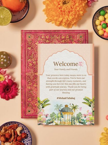 Let's get your guests excited with modern, animated e-invites perfect for sharing on WhatsApp. I also design matching welcome standees for every function, ensuring your wedding's visual theme is consistent from the first announcement to the last event.