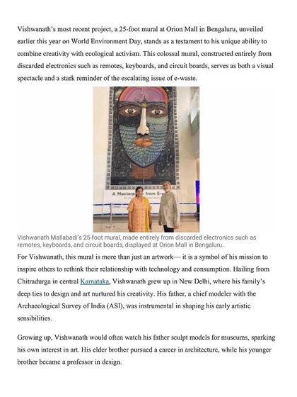 Hi, Vishwanath here. I’m not your regular artist - started as an engineer, got my hands dirty with ham radios, and now I turn old gadgets into art. Dad was a palace sculptor, so I grew up in that creative mess. Kabadi bazaar is my playground. I see stories and rhythm in junk, not just trash. I’m also into music and poetry. Art, for me, is a second life. This is my upcycle journey.