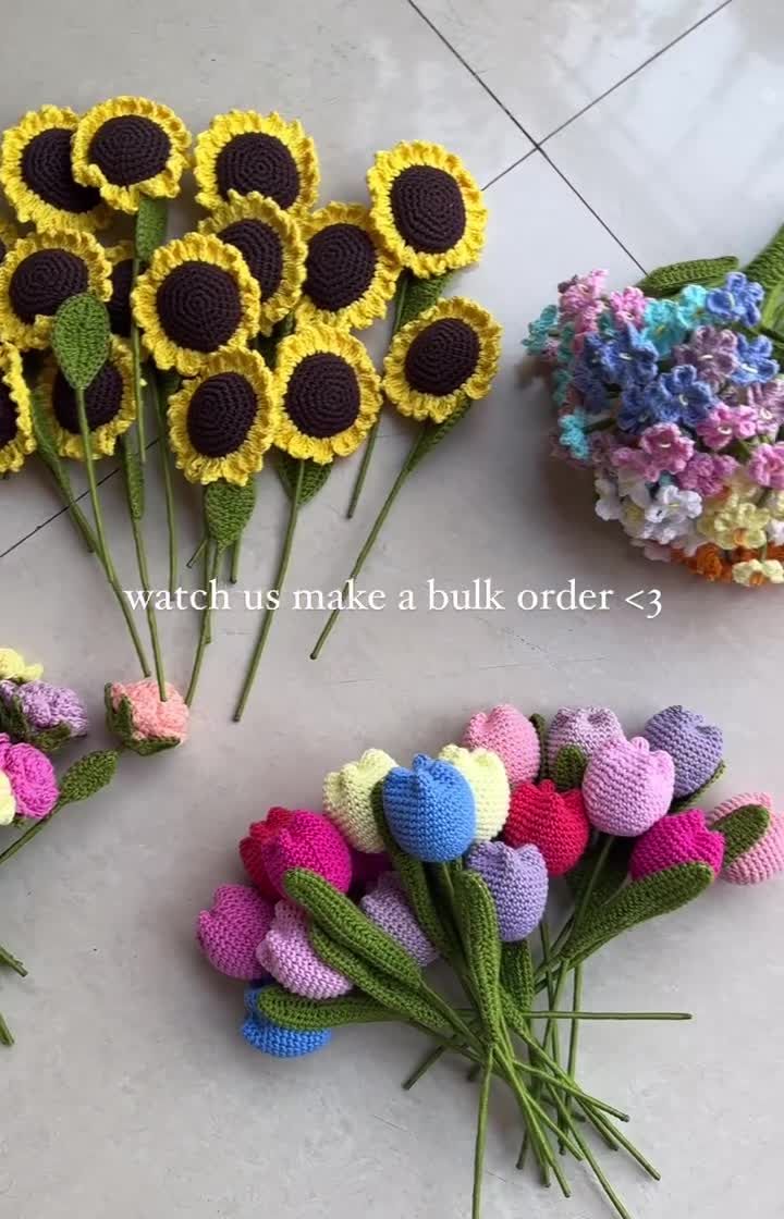 We handcraft each flower to create bouquets and arrangements that last forever. This collection includes a variety of flowers like tulips, roses, sunflowers, and lilies, available as single stems, full bouquets, or potted plants perfect for any decor.