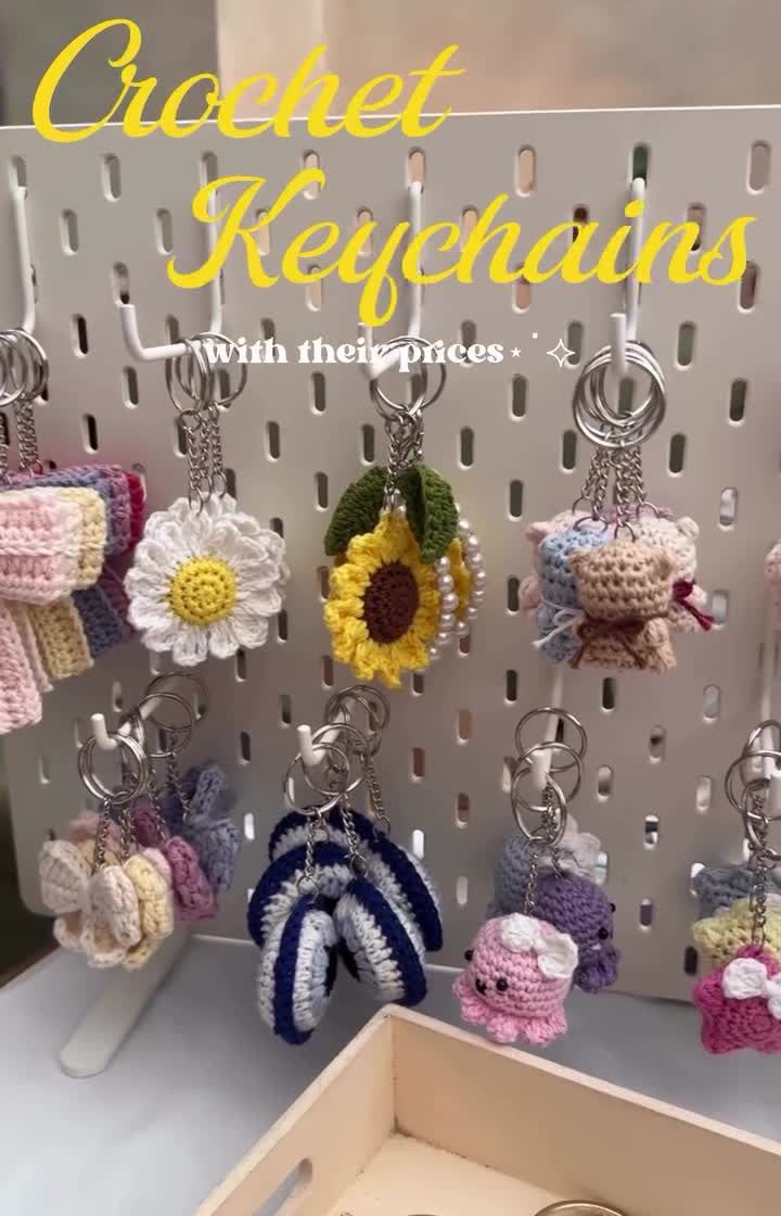 Add a touch of handmade charm to your keys or bags with our collection of keychains. We offer both crochet designs like flowers, animals, and bows, and macrame patterns including rainbows and diamond knots, all customizable in your favorite colors.