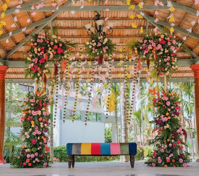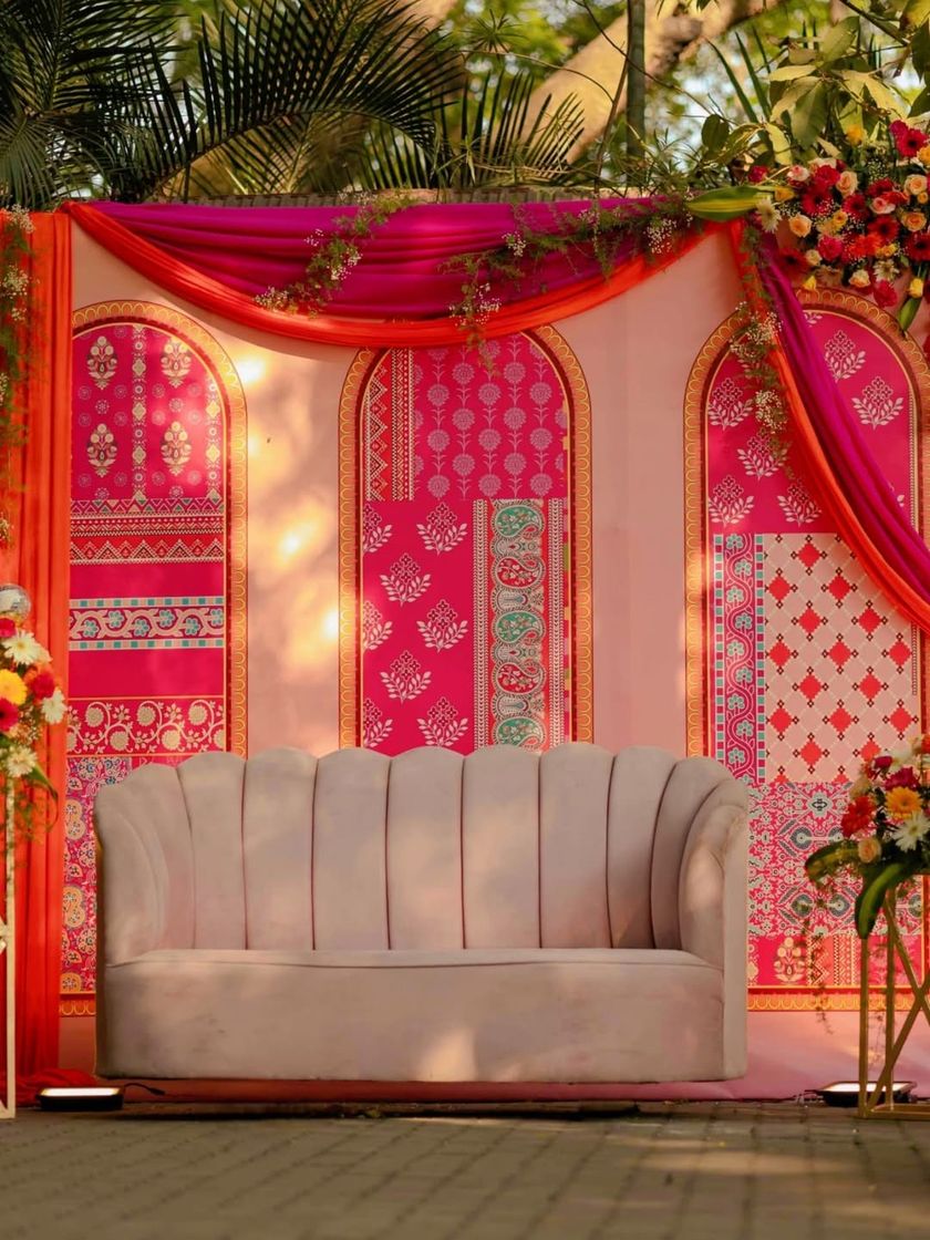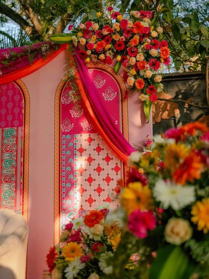 Our Mehendi decor is all about celebrating with vibrant colors, bold patterns, and quirky details. We use elements like block prints and personalized touches to create a fun, festive atmosphere that gets everyone in the mood for dancing.