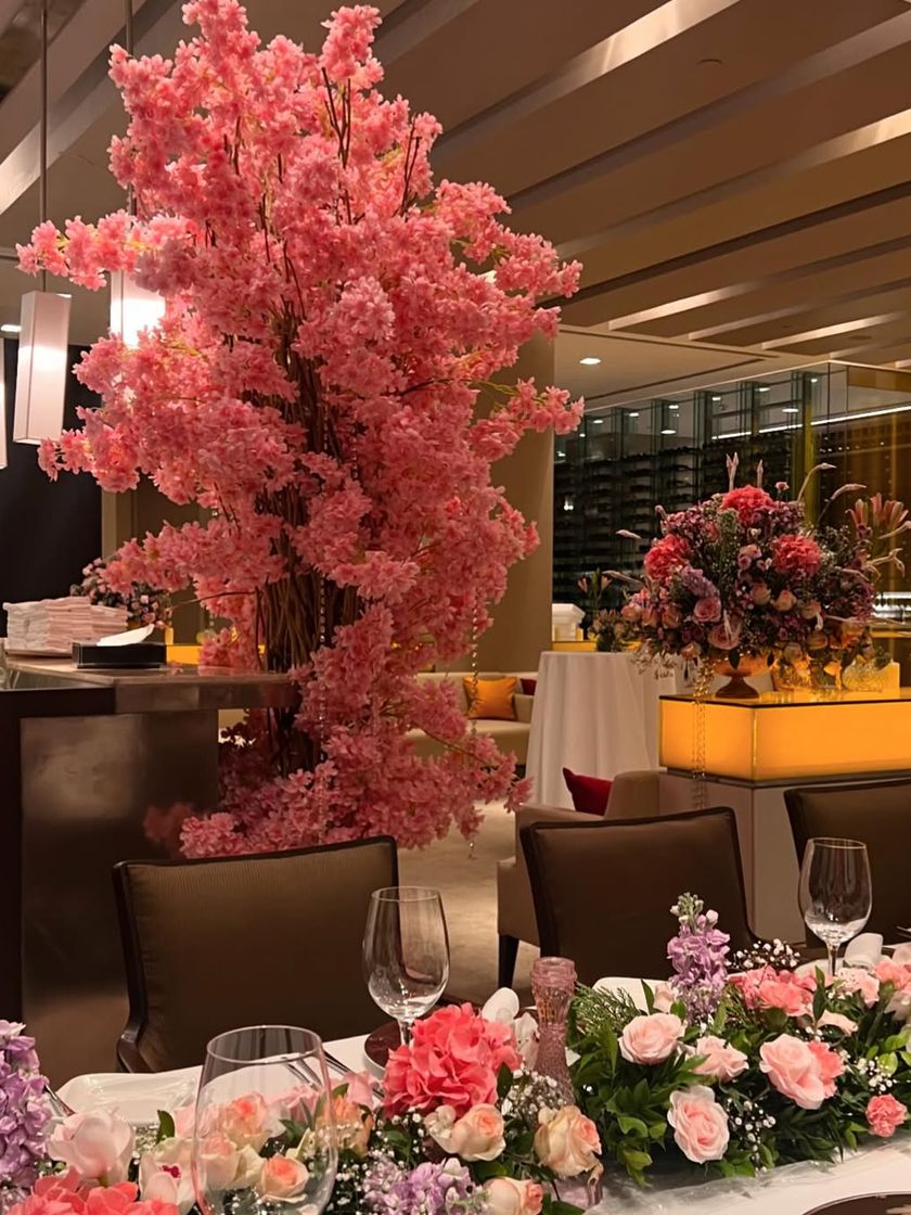 We transform restaurant and private spaces into sophisticated settings for milestone birthdays, anniversaries, and corporate dinners. Our expertise lies in creating elegant atmospheres using stunning floral arrangements, from full cherry blossom trees to refined tablescapes.