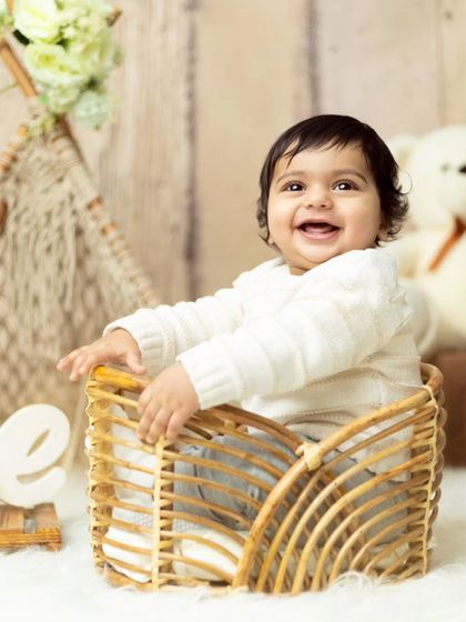 We photograph newborns and kids in our baby-friendly Noida studio, offering milestone, cake smash, and themed shoots with flexible sessions focused on comfort and real family moments.