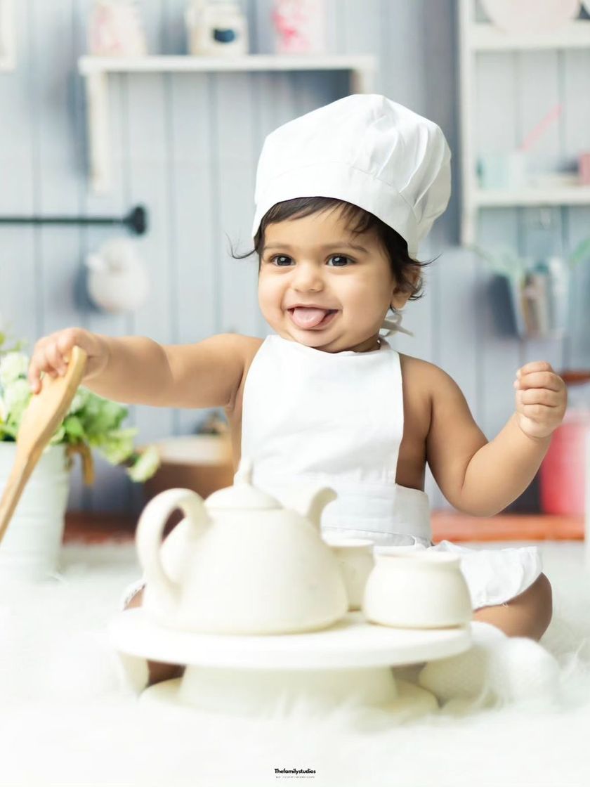 Let your child's imagination run wild with our creative themed photoshoots. We offer a variety of fun setups including mini chef, jungle explorer, and festive themes like Christmas or Janmashtami, complete with props and costumes.