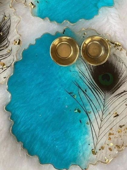 - Resin coasters and platters in cool shapes like geodes, classic rounds, or squares - especially those beachy ones with actual shells. People love these for festive setups, like Rakhi platters.