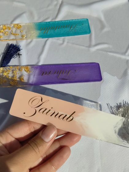 Enhance your reading experience with a personalized resin bookmark. I can customize them with your name or initial, your favorite colors, real flowers, and glitter, and finish each one with a matching tassel.