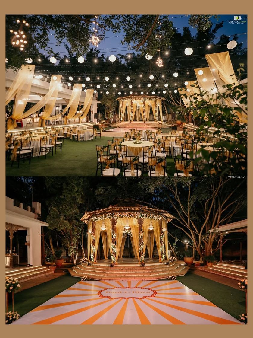 This is where the celebration comes alive with music, dance, and glamour. We design Sangeet and Reception nights that deliver the 'wow' factor. From custom-printed dance floors and dramatic lighting to elegant stage setups and comfortable guest lounges, our focus is on creating a high-energy, unforgettable party atmosphere.