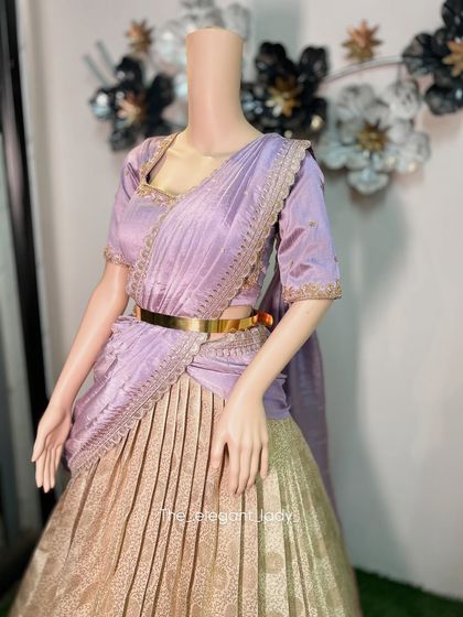 - Designer half-saree rental, including crop-top sets and bold Langa Voni combos for those who want a mix of trendy and traditional.
