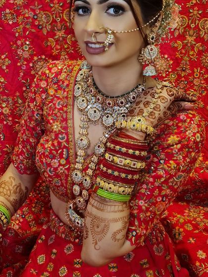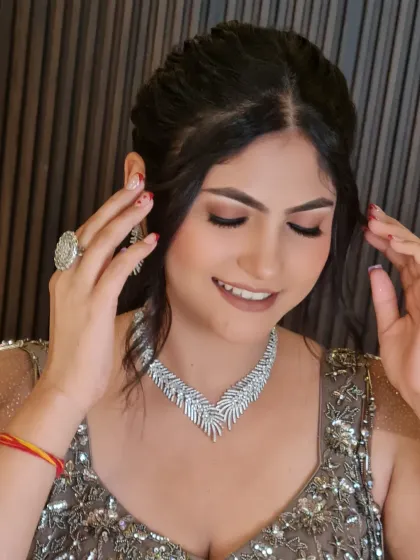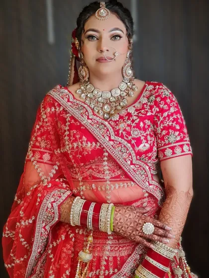 We specialize in natural, waterproof bridal makeup that enhances your features for a flawless 'wao' look. We also offer complete hair services and act as your wedding prep buddy, guiding you on everything from your look to your lehenga.