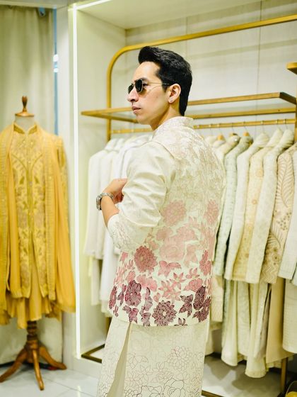 - For the main ceremony, I design sherwanis and festive kurtas with detailed, handcrafted embroidery - gold, silver thread work, mirrors, patterns. If you want to upgrade your kurta game, this is it.