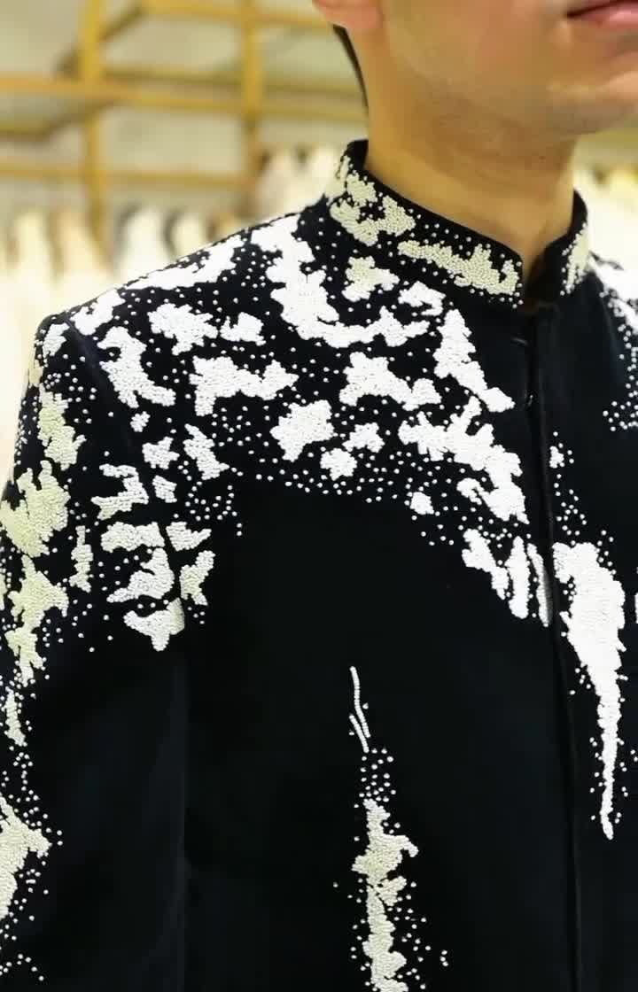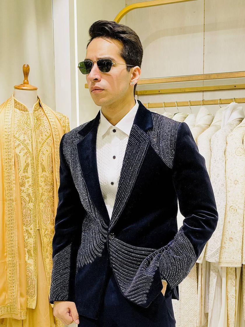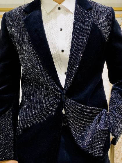 Make an entrance at your Sangeet or cocktail night with our collection of custom tuxedos and blazers. I focus on rich velvets, subtle shimmer, and unique embellishments like Swarovski crystals and beadwork for a look that's energetic and refined.