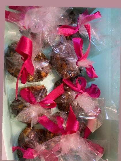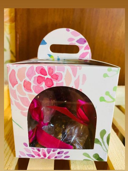 We create customized gift boxes featuring our signature treats like almond caramello chocolate discs, brownies, and cupcakes. Each box is thoughtfully curated and elegantly packaged with decorative elements to make your gifting memorable.