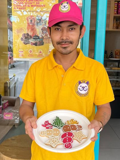 Let your dog join in the Christmas magic with our special holiday menu. We offer a festive range including beautifully decorated pupcakes, Christmas tree cakes, assorted holiday cookies, and even unique Christmas popsicles.