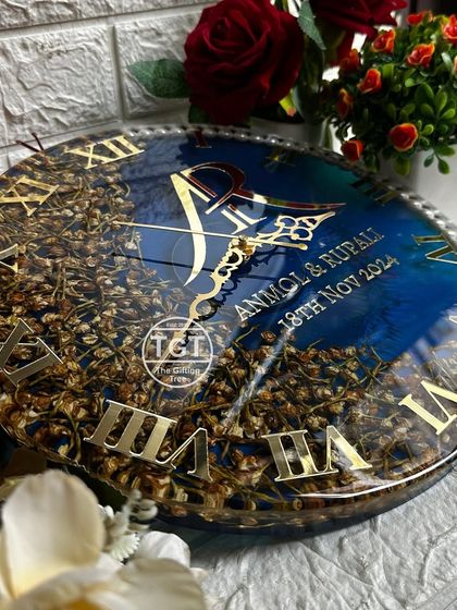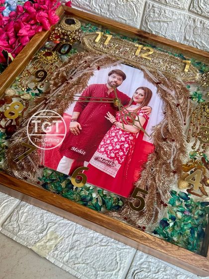 Hello ji! Hum The Gifting Tree hain, aur hamara kaam hai aapki shaadi ki yaadon ko resin art mein badalna. Ek din socha, varmala sookh kar gayab ho jaati hai, toh kyun na use hamesha ke liye sambhal lein? Ab tak 15,000 families ki love story ko ek frame ya clock mein badal chuke hain. Har piece mein ek kahani hoti hai, aur hum poori koshish karte hain ki uss yaad ko masterpiece bana dein.