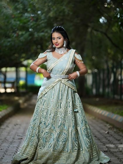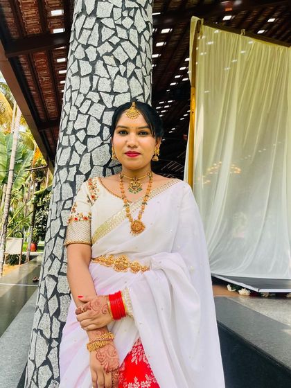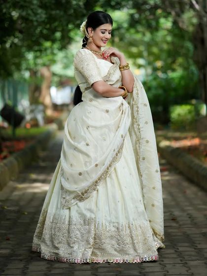 We specialize in creating personalized bridal attire with intricate embroidery and embellishments. Our offerings include custom bridal blouses, sarees, and traditional South Indian wedding ensembles.