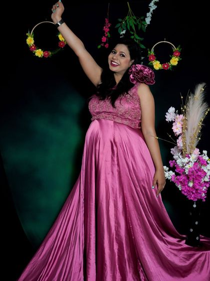 - I’ve got a ton of maternity gowns in every color you can think of. Want traditional maternity photography saree looks? Go for it. You can also keep it casual, whatever feels good.
