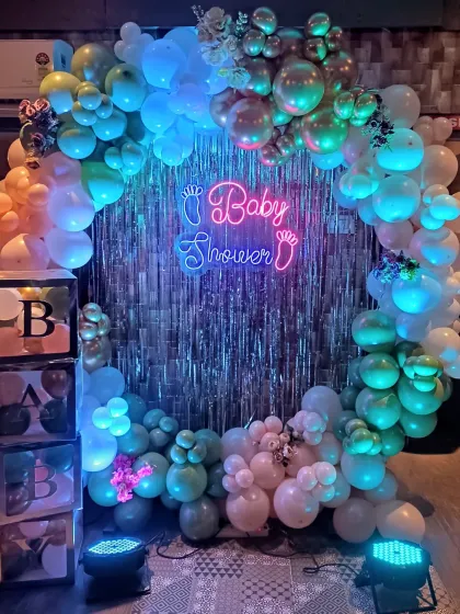 Mumbai and Navi Mumbai, any venue, full setup - no stress for you. Pastel baby party setup or bold colors, I got it.