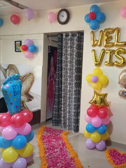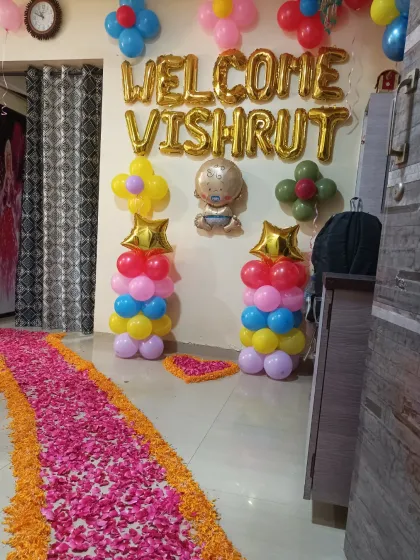 I create sweet and simple decorations for that special moment you bring your baby home for the first time. This includes personalized "Welcome Baby" foil balloons, ceiling decorations, and beautiful flower petal pathways.