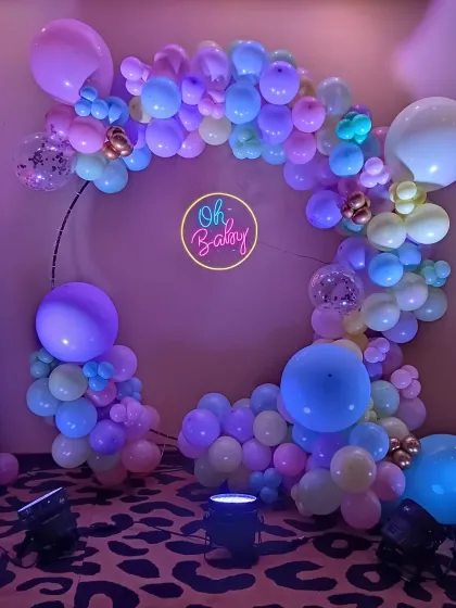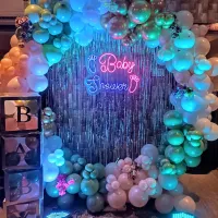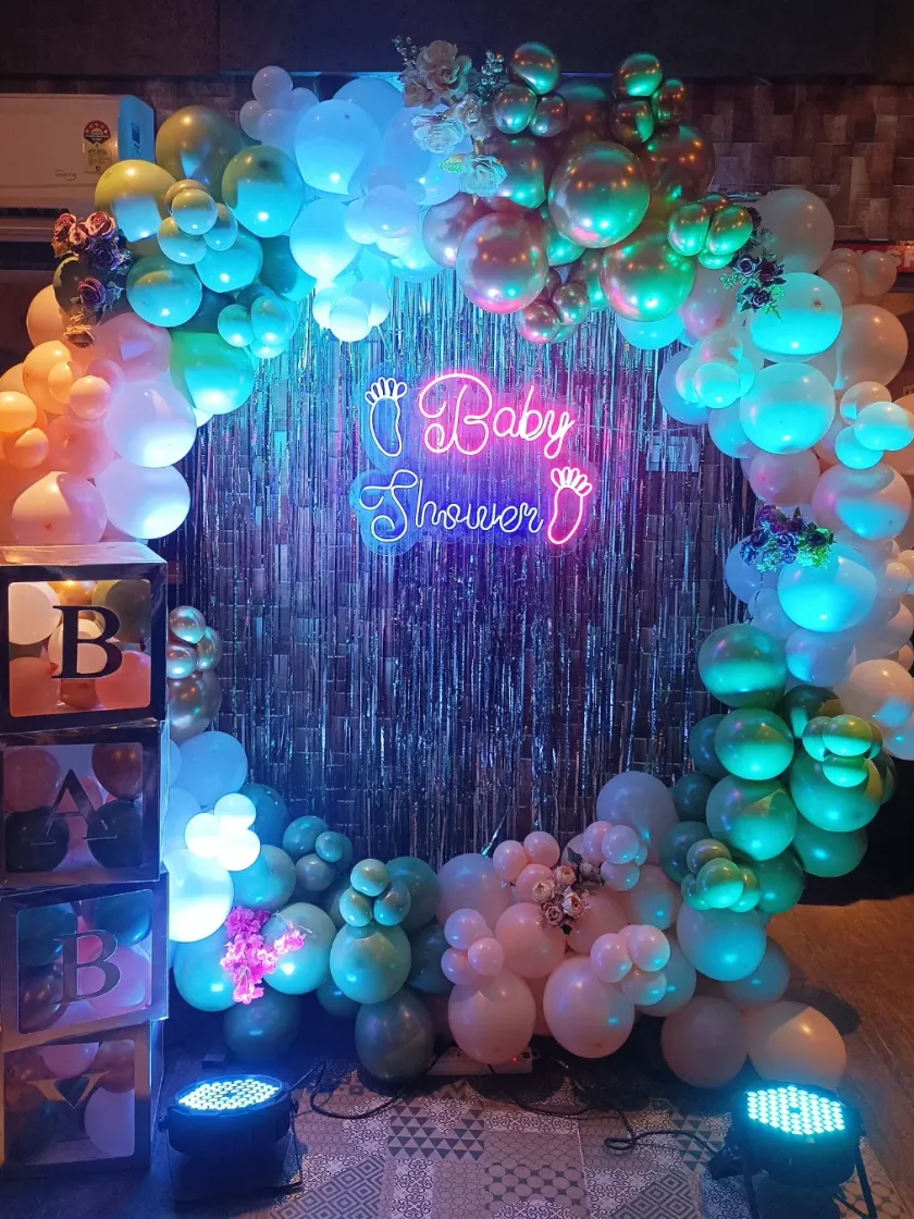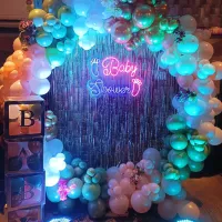 I create stunning photo backdrops for your baby shower using trendy elements like ring frames, shimmer walls, and custom neon signs. From pastel butterfly themes to elegant florals or divine Krishna themes, I design a setup that gets everyone excited for pictures.