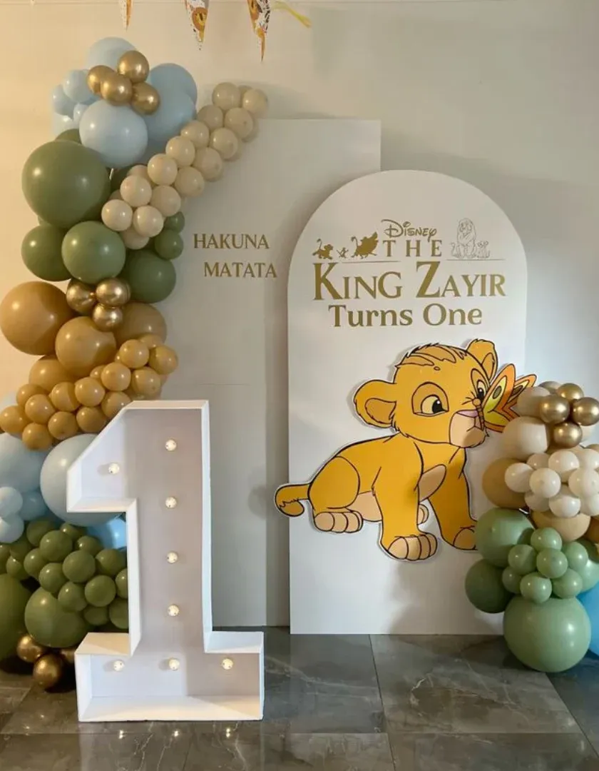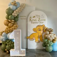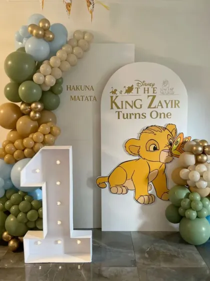 I bring popular characters and fun ideas to life for your baby's big first birthday. Popular choices include the adventurous Jungle Safari, the royal Lion King, or the playful Boss Baby, complete with character cutouts and themed backdrops.