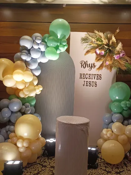 I design beautiful backdrops for your baby's naamkaran, often using popular themes like the jungle safari to make the day memorable. I also provide decorations for other special family milestones like a Holy Communion.