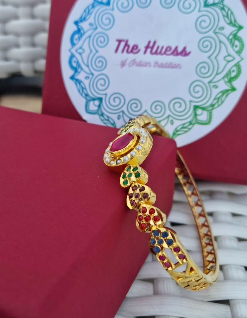 Explore my collection of gold-plated bracelets and openable bangles, perfect for adding a touch of desi charm to any outfit. These pieces range from sleek, minimalist designs to intricate Jadau work, suitable for both gifting and personal wear.