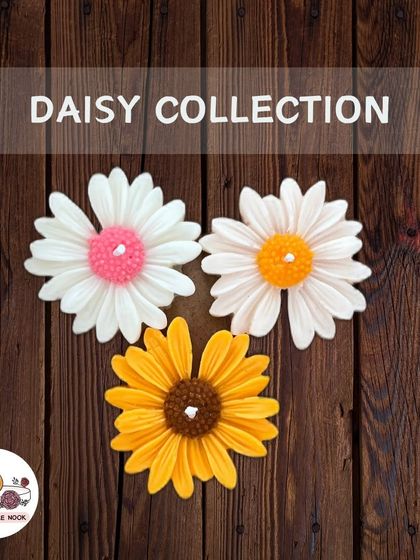 We craft hand-poured daisy-shaped candles in delightful color combinations like white with pink, white with orange, and yellow with brown centers. Each candle is designed to add a festive touch while providing a gentle, warm glow to your space.