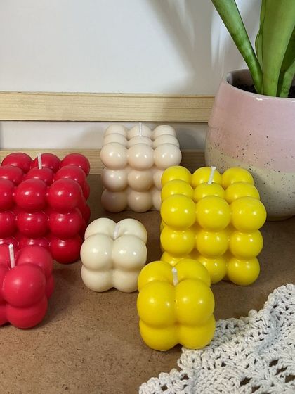 Hand-poured Scented Candles - We make bubble candles, dual-tone peonies, festive daisies, and handmade heart-shaped candles.