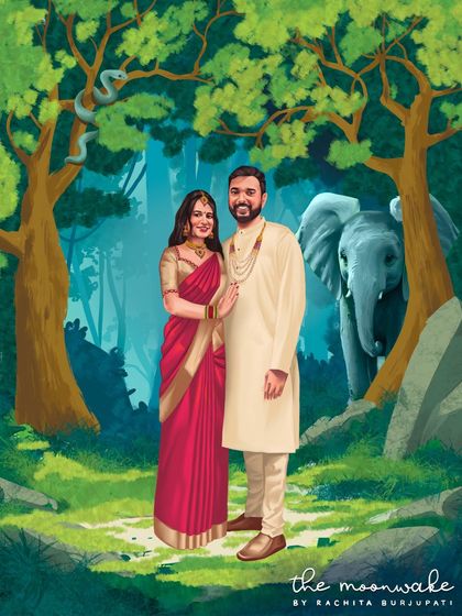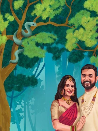 Illustrated Love Stories - I weave your memories—like first dates or proposals—into art. Details matter, especially for South Indian wedding decor illustration.