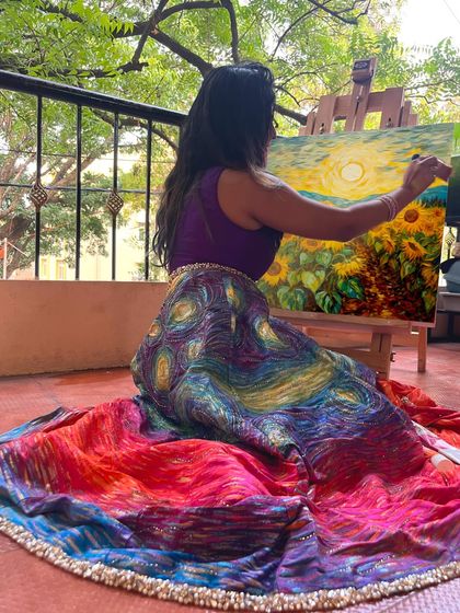 Hey, I’m Rachita. I see art everywhere—seriously, even my own wedding turned into a wild art project. Painted my own lehenga (yes, really), stitched our memories into velvet, and made every little thing a bit magical. My dad kept saying ‘relax,’ but painting is my chill zone. Whether it’s a mural in Goa or sunset fantasy on fabric, for me, art is always personal. I believe wild ideas create the best stories.