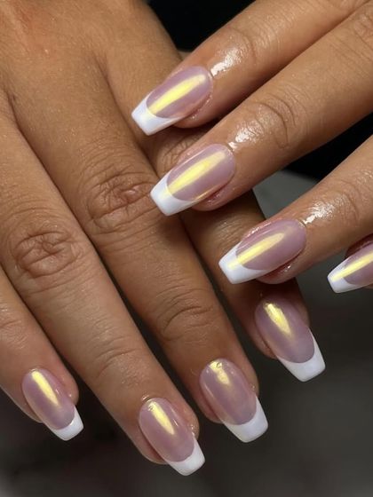 - French: Classic white tips, Colored V-tips, or Glitter French.