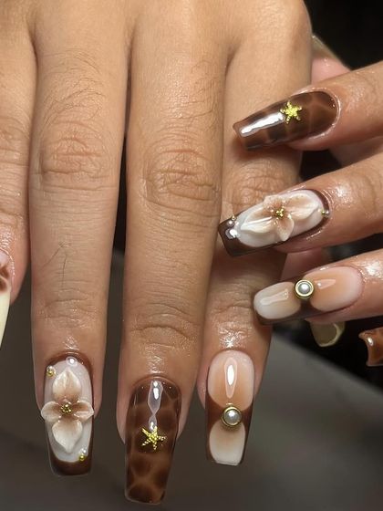 - 3D Art: Sculpted acrylic flowers, bows, or knitted textures.
