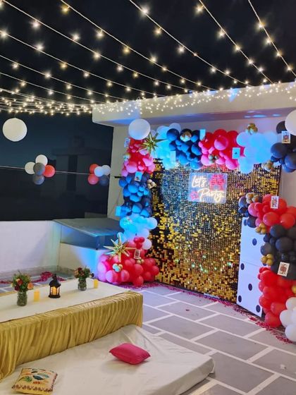 We decorate your home or terrace for any party in Delhi NCR, set up everything as per your theme and budget, and can arrange extra activities like magicians or games if you want.